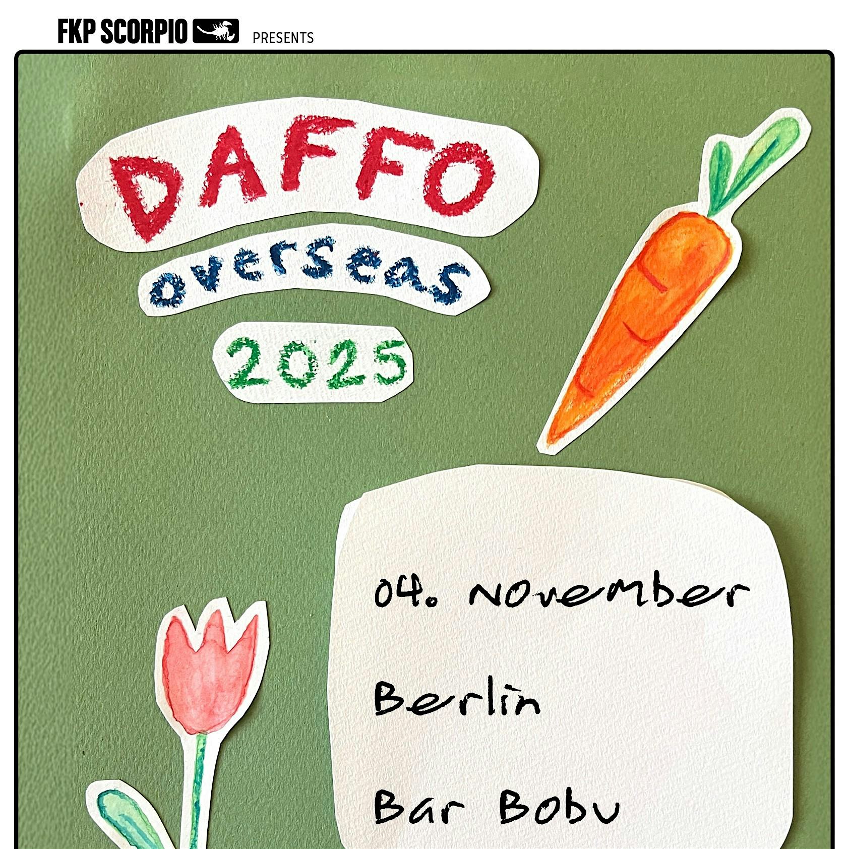 Wer Daffo nur von den Aufnahmen kennt, verpasst allerdings eine entscheidende Dimension. Auf der Bühne wird aus introspektiver Selbstbefragung eine kollektive Katharsis. Die Live-Shows sind energetische Experimente, oft mit spontanen Publikumsinteraktionen. Mal wird jemand aus dem Saal geholt, um die Mundharmonika zu spielen, mal verdichten sich stille Momente so sehr, dass sie fast greifbar werden. Zwischen den Songs spricht Daffo mit einer Mischung aus Scheu und Direktheit, die das Publikum in denselben Bann zieht wie deren Melodien. Die letzten Jahre führten Daffo auf Festivals wie The Great Escape oder Pitchfork Paris und als Support für Künstler*innen wie Blondshell quer durch die USA und Europa. Wer einmal gesehen hat, wie Daffo inmitten eines wogenden Publikums den Refrain von „Get a Life“ anstimmt, weiß, dass diese Musik nicht nur gehört, sondern erlebt werden will. Im Herbst 2025 gibt es dafür eine besondere Gelegenheit. Dann kommt Daffo für ein Konzert nach Berlin – ein Abend, der verspricht, mehr als nur ein weiteres Tourdatum zu sein.