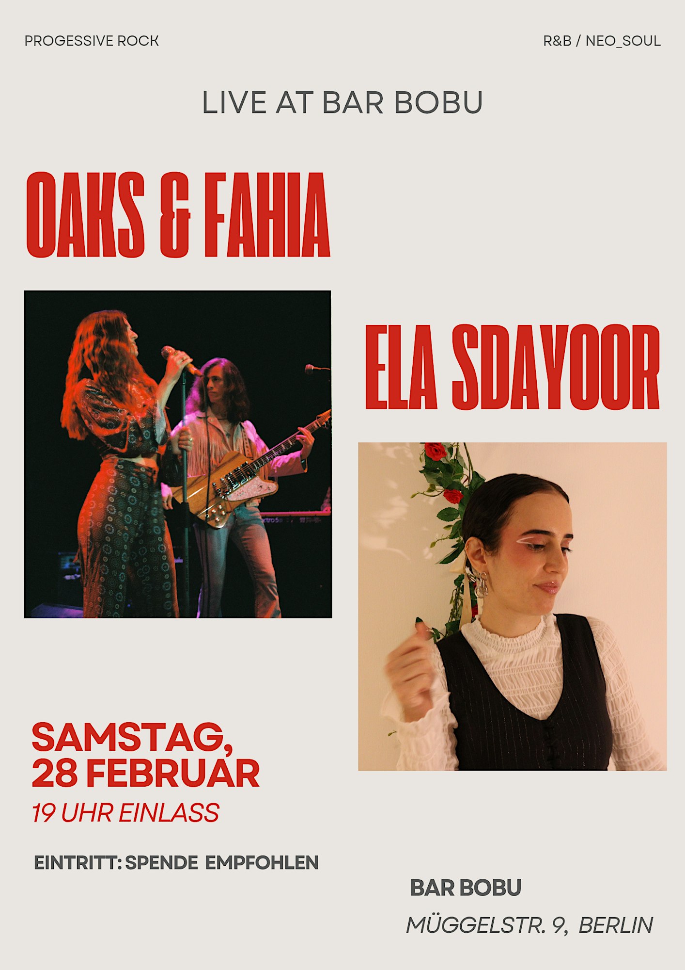 • OAKS & FAHIA and ELA SDAYOOR live at BARE BOBU